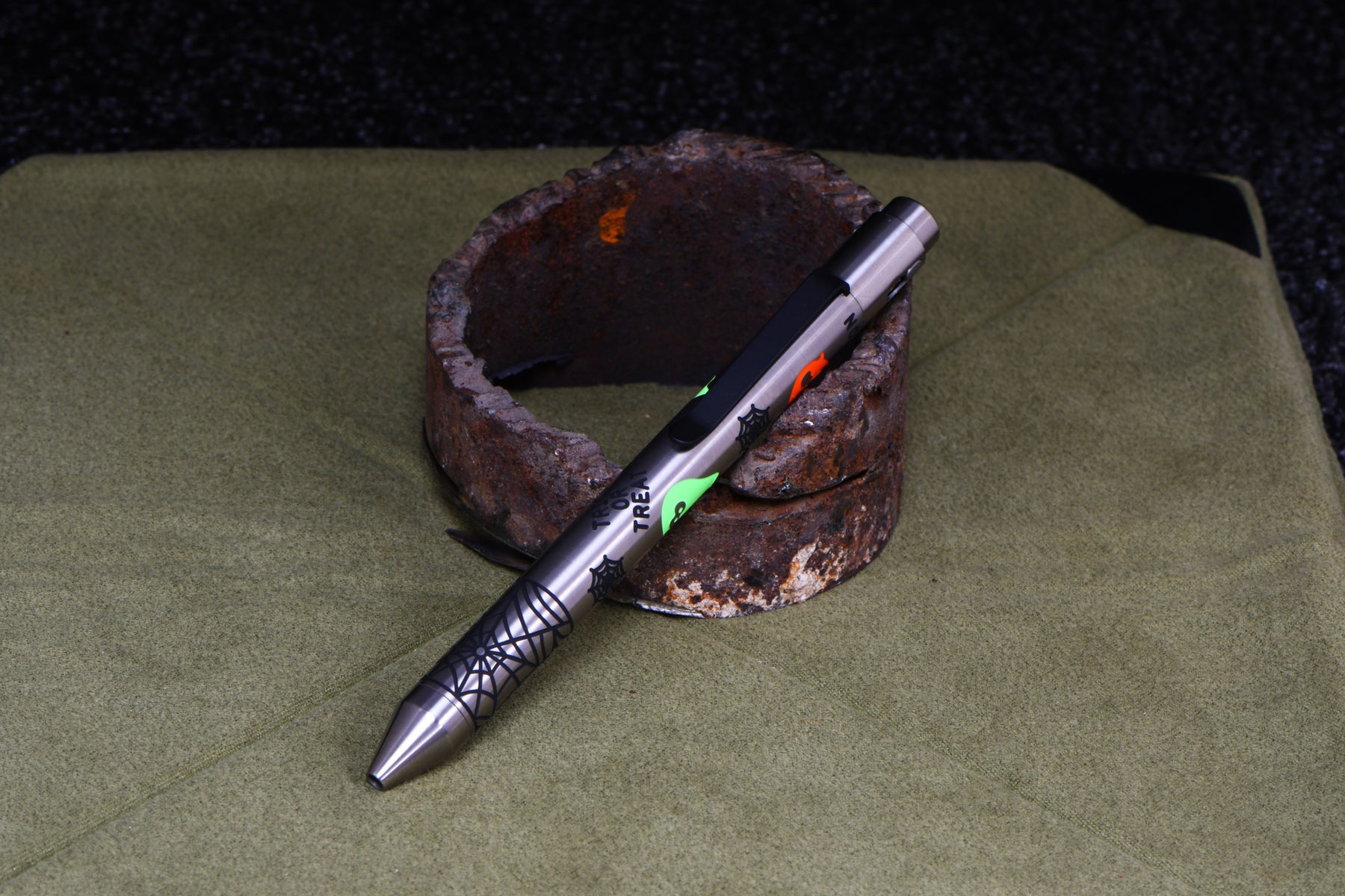 A sleek “treat” that glows under blacklight — clean, bold, and built for those who like their pens with a little mystery.