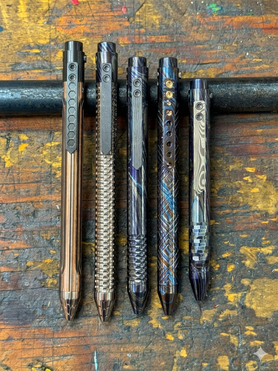 Every NTI pen is precision-machined in the USA from titanium, copper, or brass — and assembled in-house from the first cut to the final click. Designed by Lee Nottingham. No grease. No maintenance. Built to outlast you.